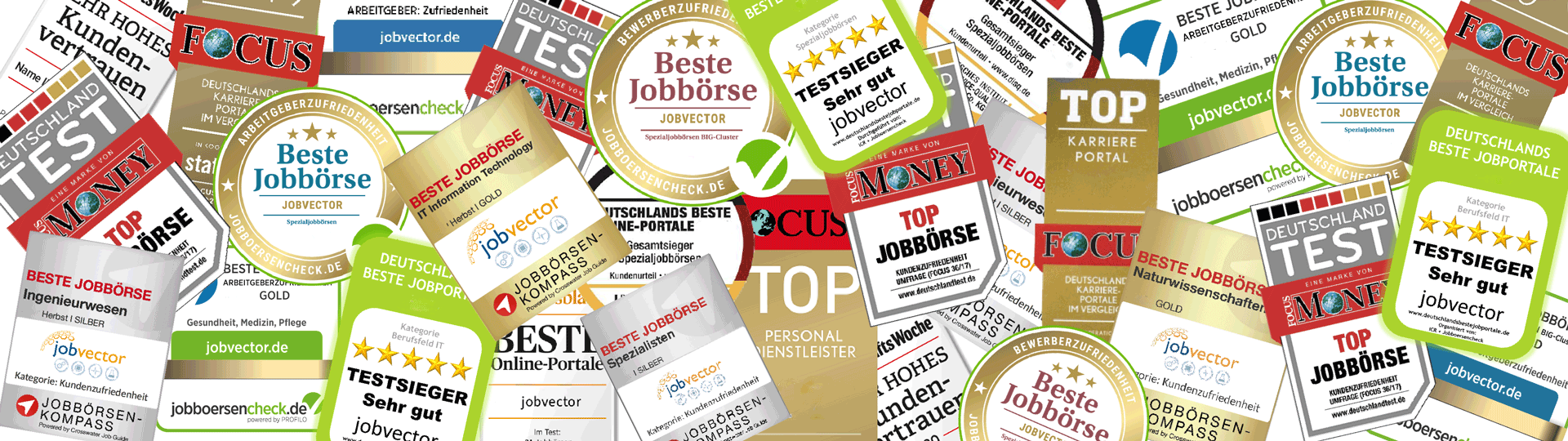 jobvector wurde in verschiedenen Kategorien als Beste Jobbörse ausgezeichnet und erhielt über 150 Auszeichnungen und Testsiege in unabhängigen Studien.