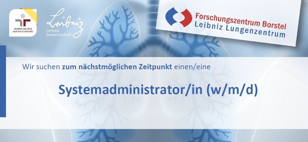Das FZB ist für das Audit „berufundfamilie“ zertifiziert und fördert gezielt die Vereinbarkeit von Beruf und Familie. Das unterrepräsentierte Geschlecht wird bei gleicher fachlicher und persönlicher Eignung besonders berücksichtigt. Ebenso werden Schwerbehinderte bei sonst gleicher Eignung bevorzugt berücksichtigt. Weitere Informationen zu unserer Rekrutierungspolicy sowie unserer Zertifizierung „HR Excellence in Research“ finden Sie auf unserer Homepage. Rückfragen beantwortet Ihnen gern Frau Prof. Dr. Wohlers (Leitung Data Science). Bitte senden Sie Ihre Bewerbung mit den üblichen Unterlagen (Anschreiben, Lebenslauf ohne Lichtbild, Zeugnisse und ggf. Zertifikate) bis zum 31.05.2026 über unsere Website www.fz-borstel.de.