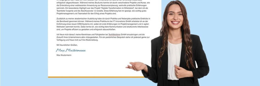 - Keine Floskeln: Vermeide abgedroschene Phrasen und sei authentisch. Floskeln wie „Mit freundlichen Grüßen verbleibe ich in der Hoffnung auf eine positive Antwort“ wirken unpersönlich und wenig überzeugend. Setze stattdessen auf authentische Formulierungen, die deine echte Motivation und Persönlichkeit widerspiegeln. Beispielsatz: „Ich freue mich darauf, bald von Ihnen zu hören.“